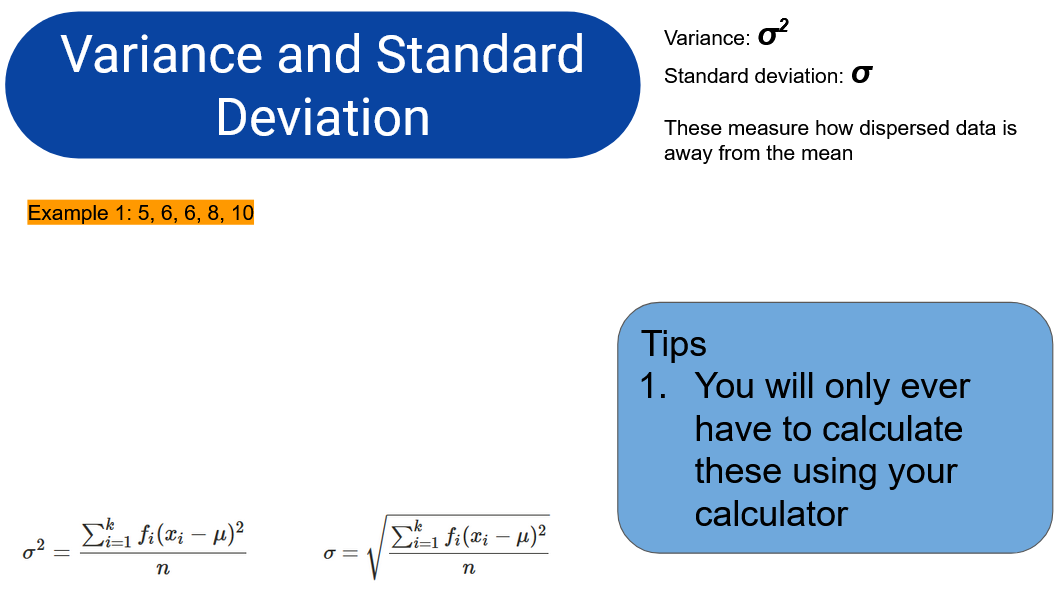 Mean, Mode, Median, Range, Variance, Standard Deviation