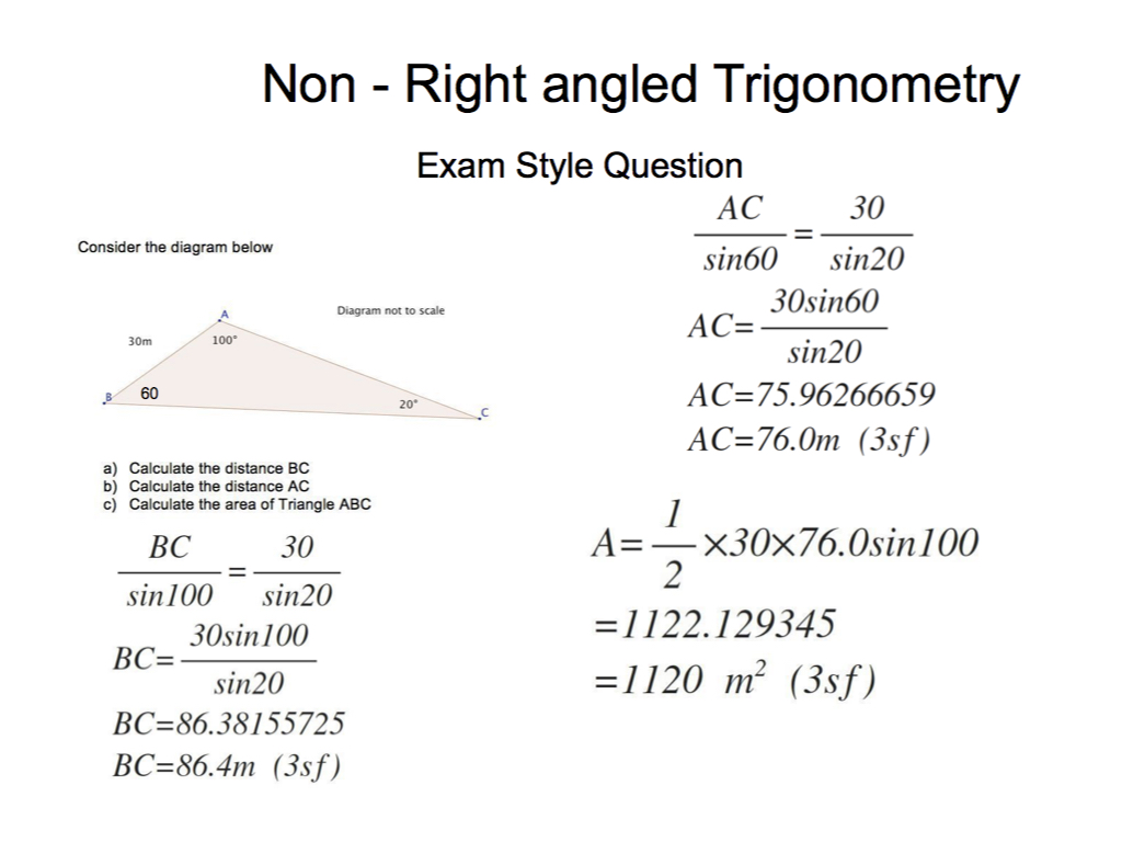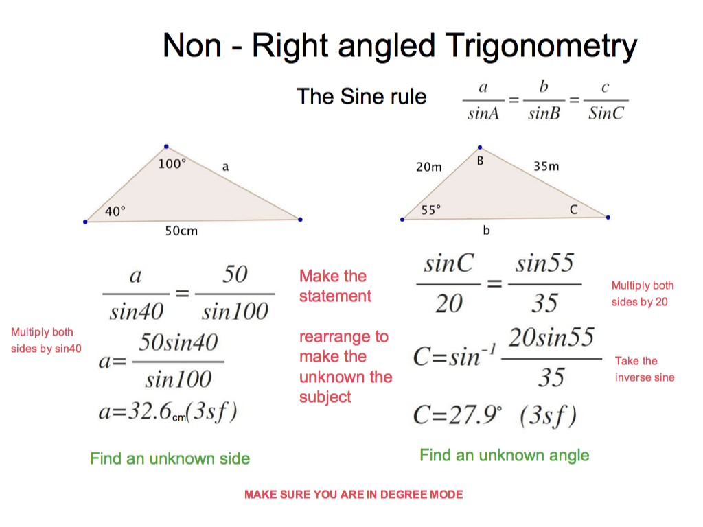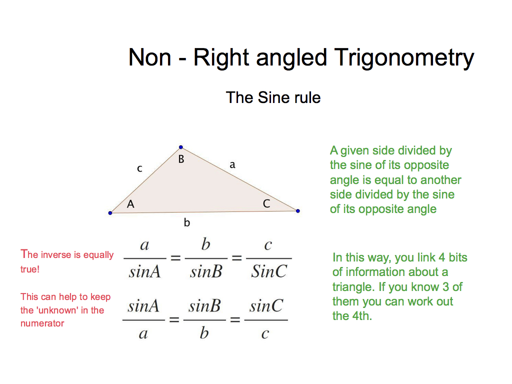 Derive, understand and use the sine rule for solving problems in non right angled trigonometry