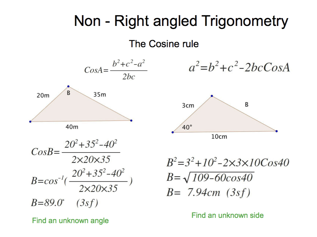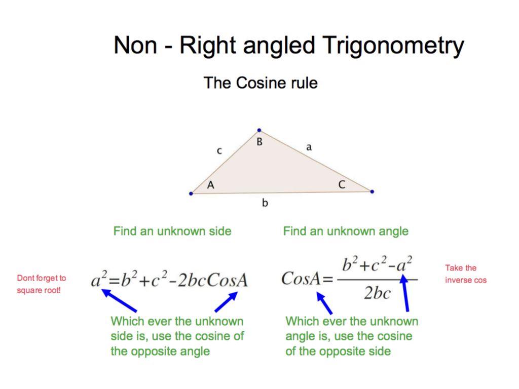 Derive, understand and use the cosine rule for solving problems in non right angled trigonometry