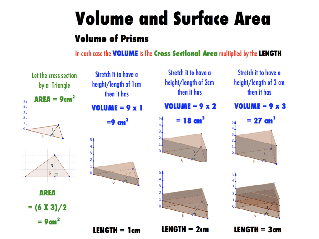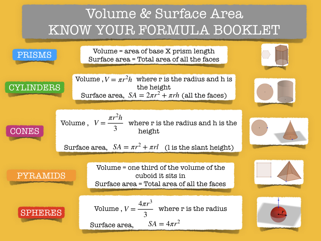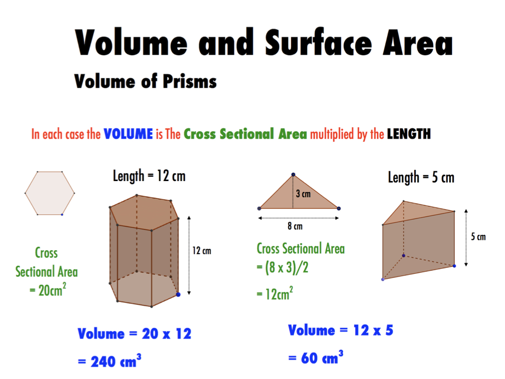 This section is all about the volume and surface area of prisms, cylinders, pyramids, cones and spheres! All of these shapes has their own unique properties and this section is about understanding and calculating the volumes and surface areas.