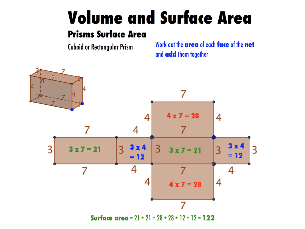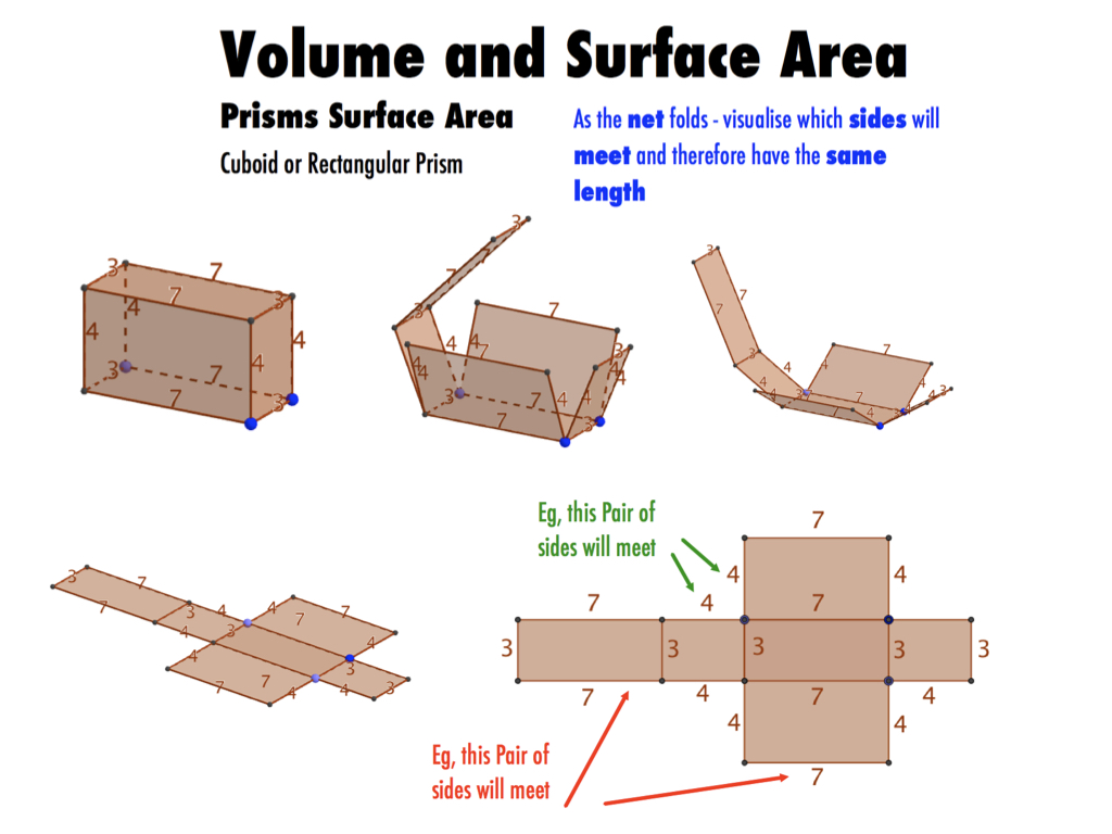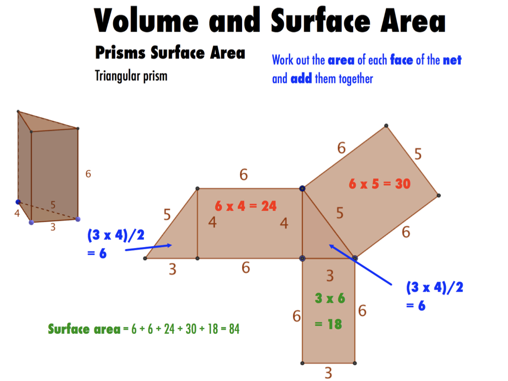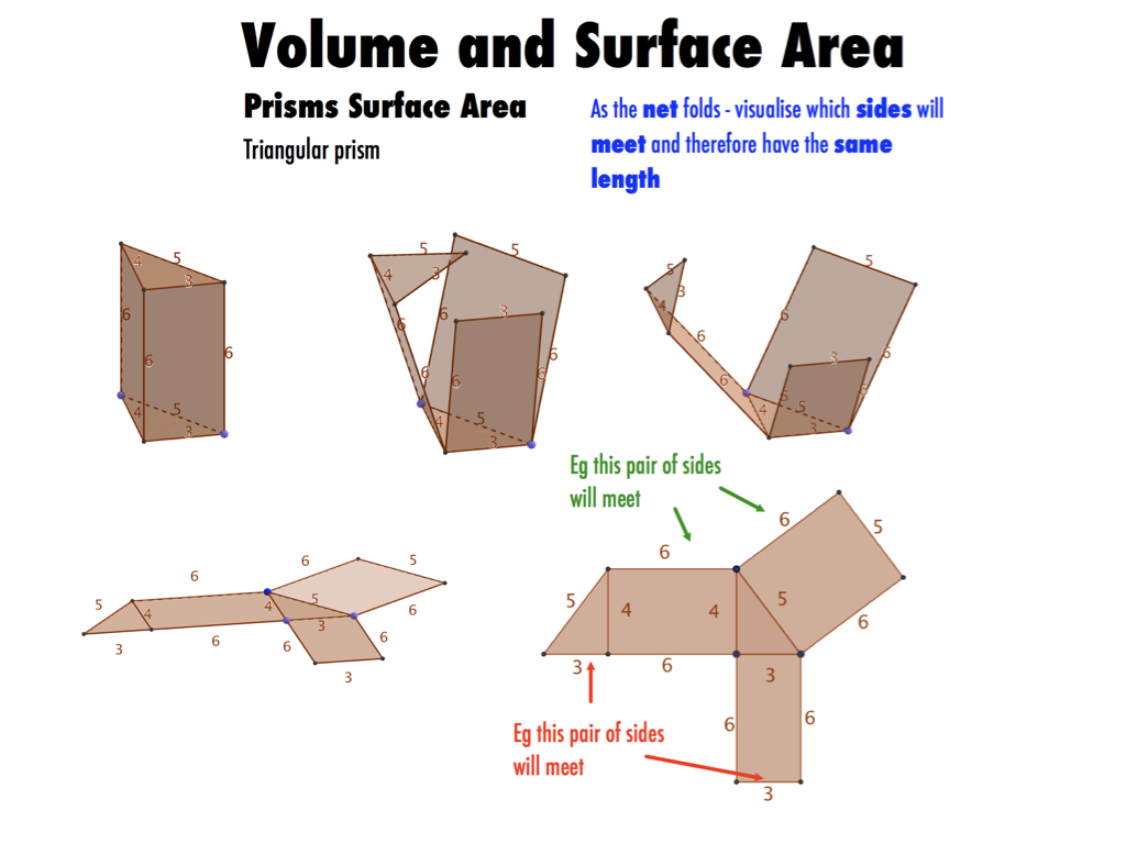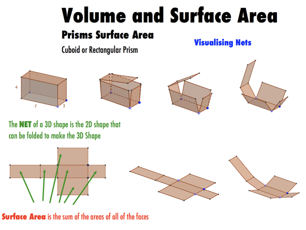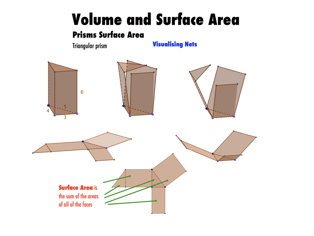 Here we learn about calculating surface area by examining the nets of different kinds of prisms.