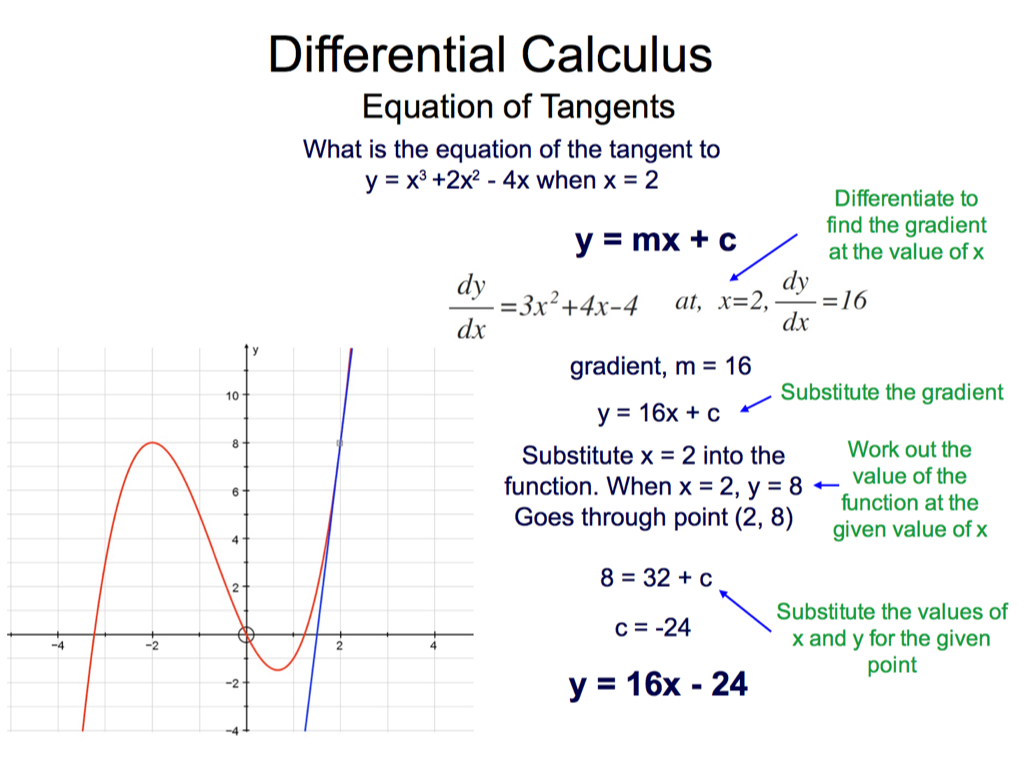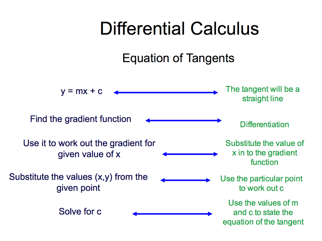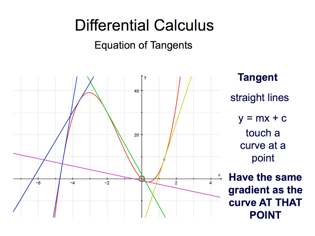 In this unit we look at find the equations of tangents and normals to curves, increasing and decreasing functions and the second derivative. All this builds on the fundamental notion that calculus tells us about the rate of of change of a function.
