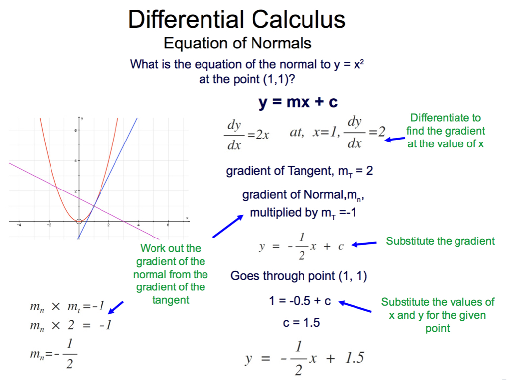 This is the same technique as we used for the tangent. They key here is the relationship between gradients of perpendicular lines.