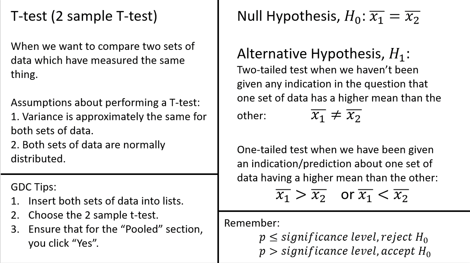 - Complete a 2 sample T-test.