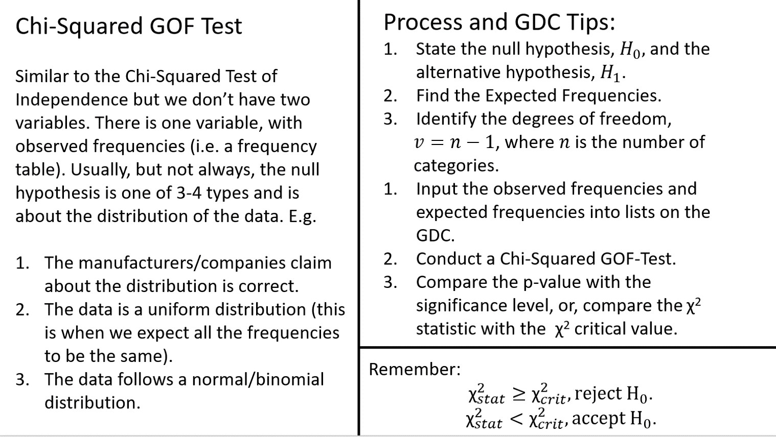 - Complete a Chi-Squared Goodness of Fit Test.