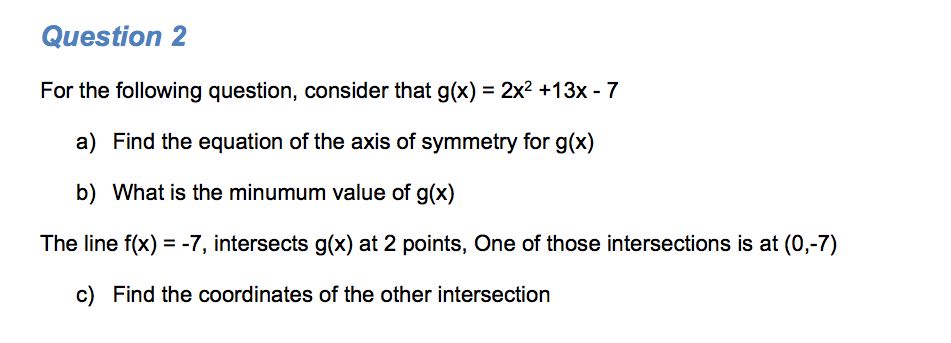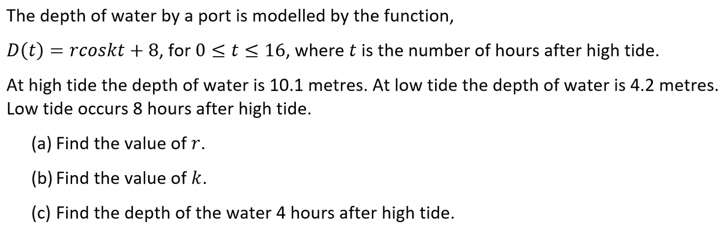 The following are exam style questions for the sub-topics in the functions unit. There are questions with video solutions here for here for Introduction, Key Features and Graphing, Linear Models, Quadratic Models, Exponential Models and Trigonometric Models.