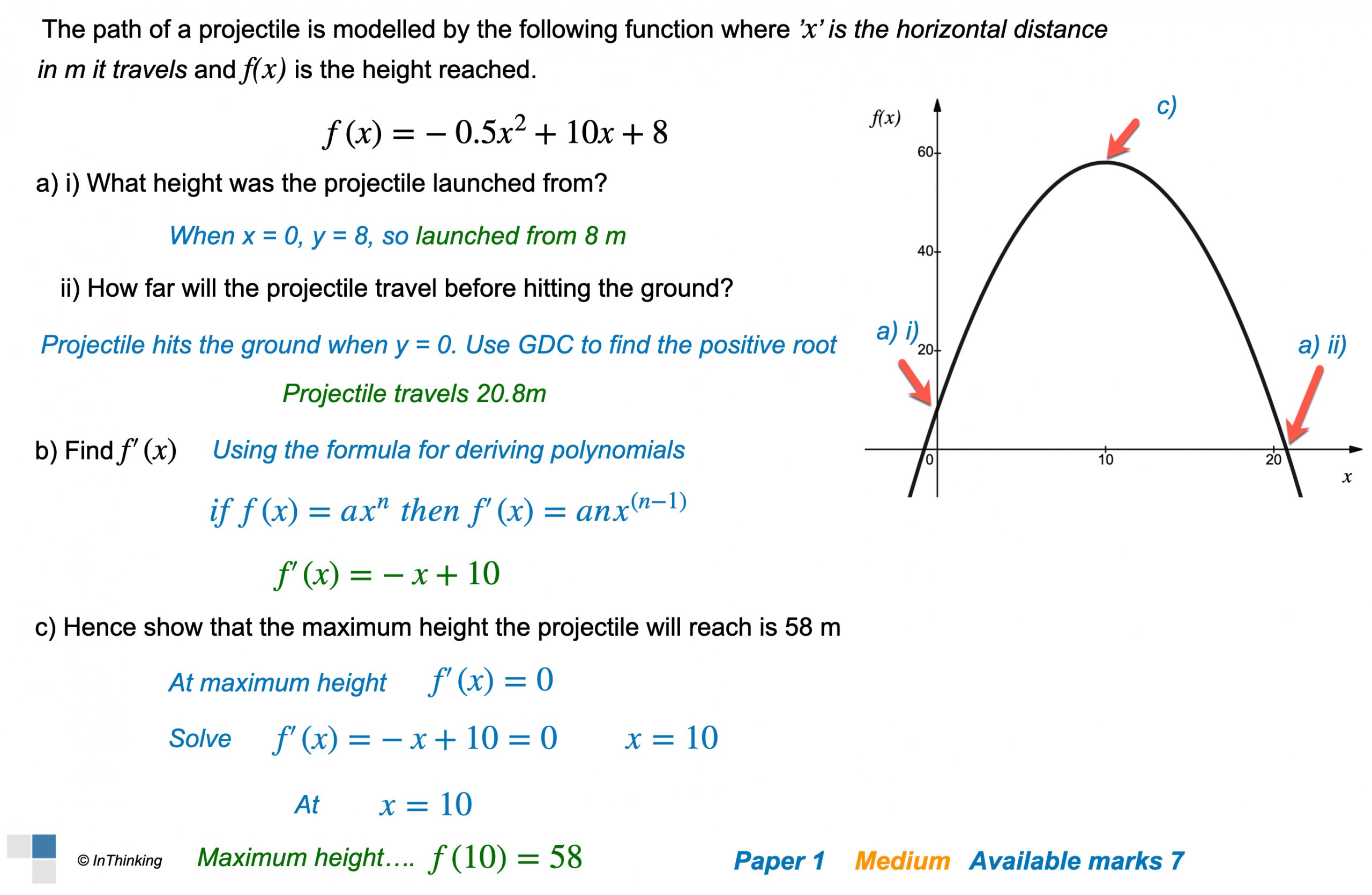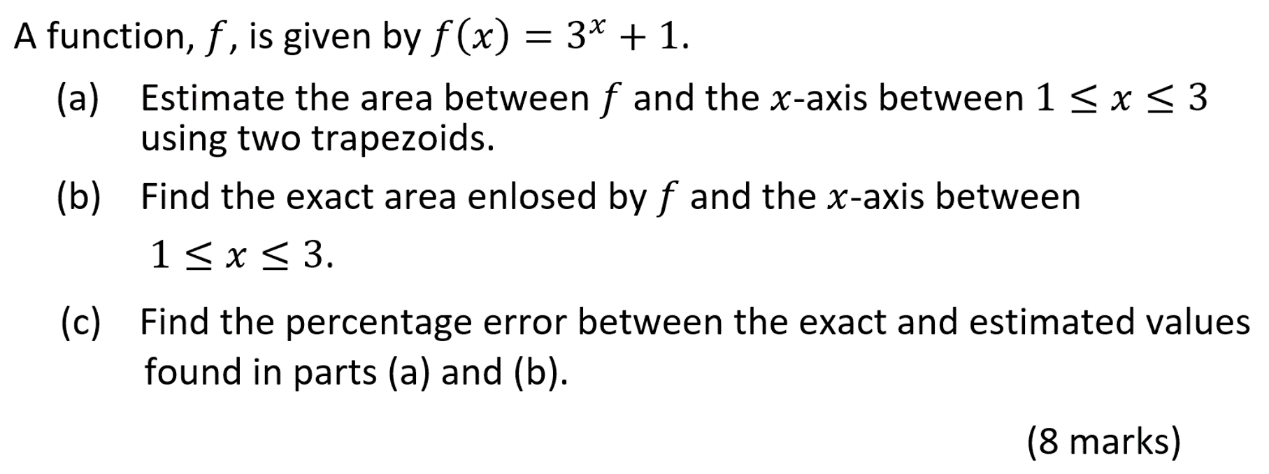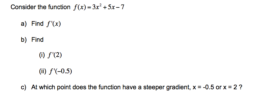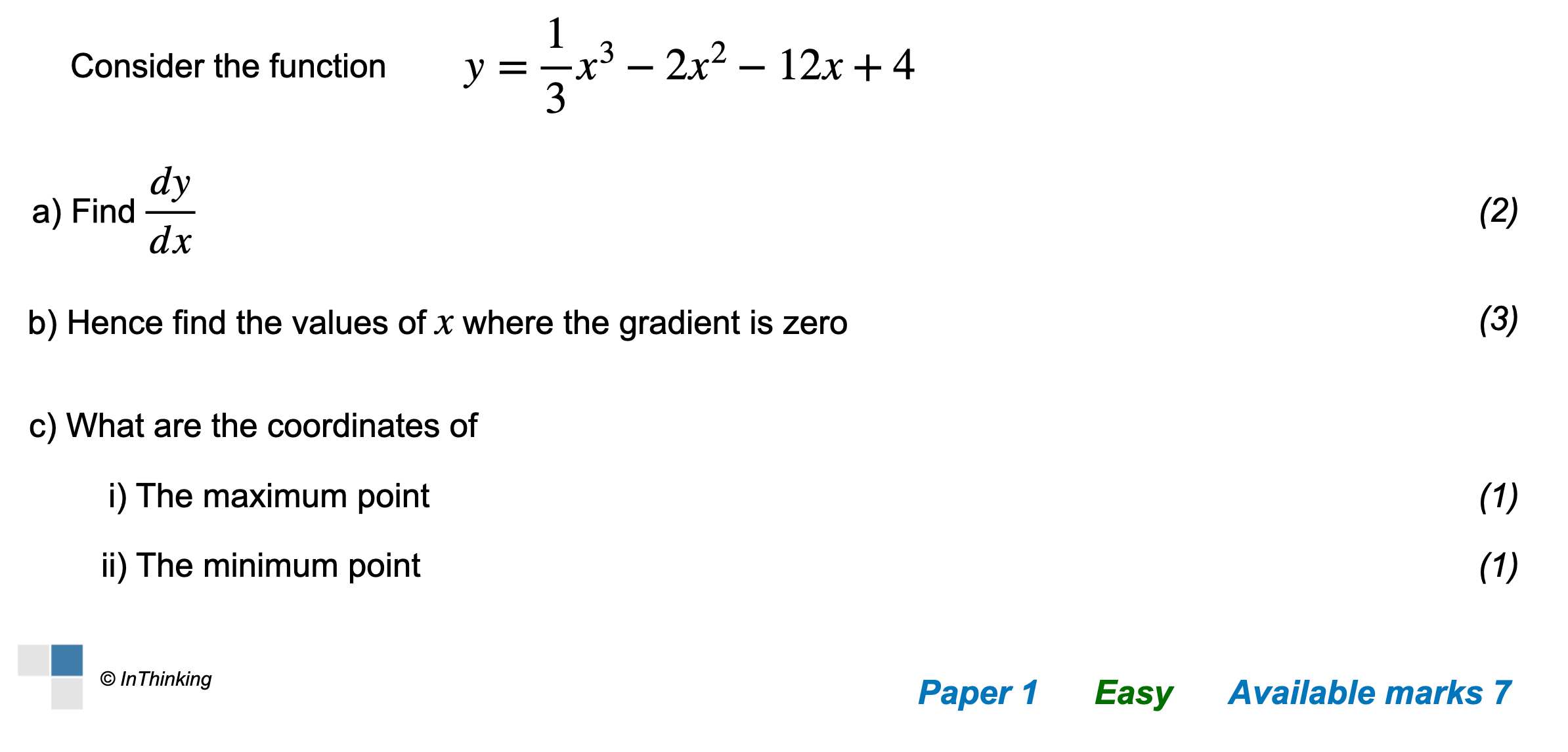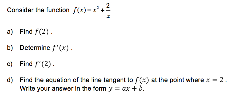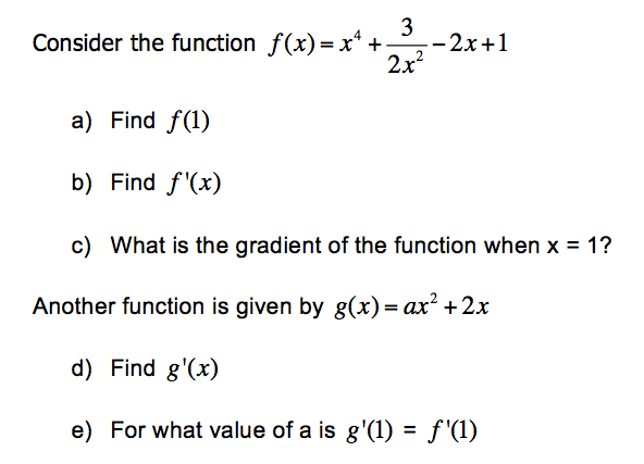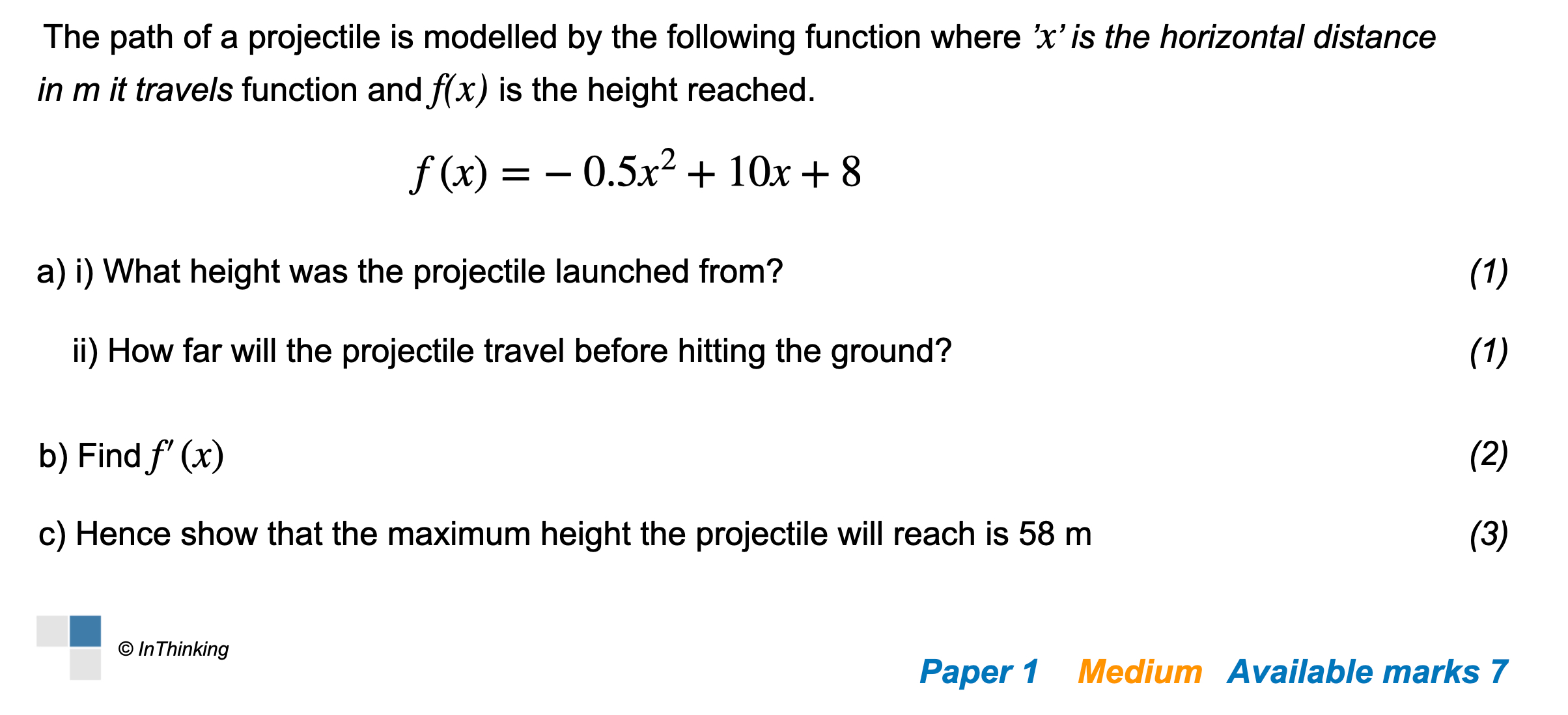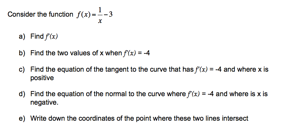 The following are exam style questions for the sub-topics in the functions unit. There are questions with video solutions here for here for introduction, tangents and normals, stationary points and optimisation and integration an the trapezoidal rule.