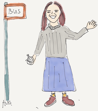 A bus accelerates with constant acceleration from rest to a speed of 15 ms-1 in 30 s. The driver then maintains a constant velocity for 1 minute before slowing down at a constant rate to stop in 10 s.
