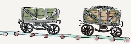 How fast will two rail trucks travel after joining up?