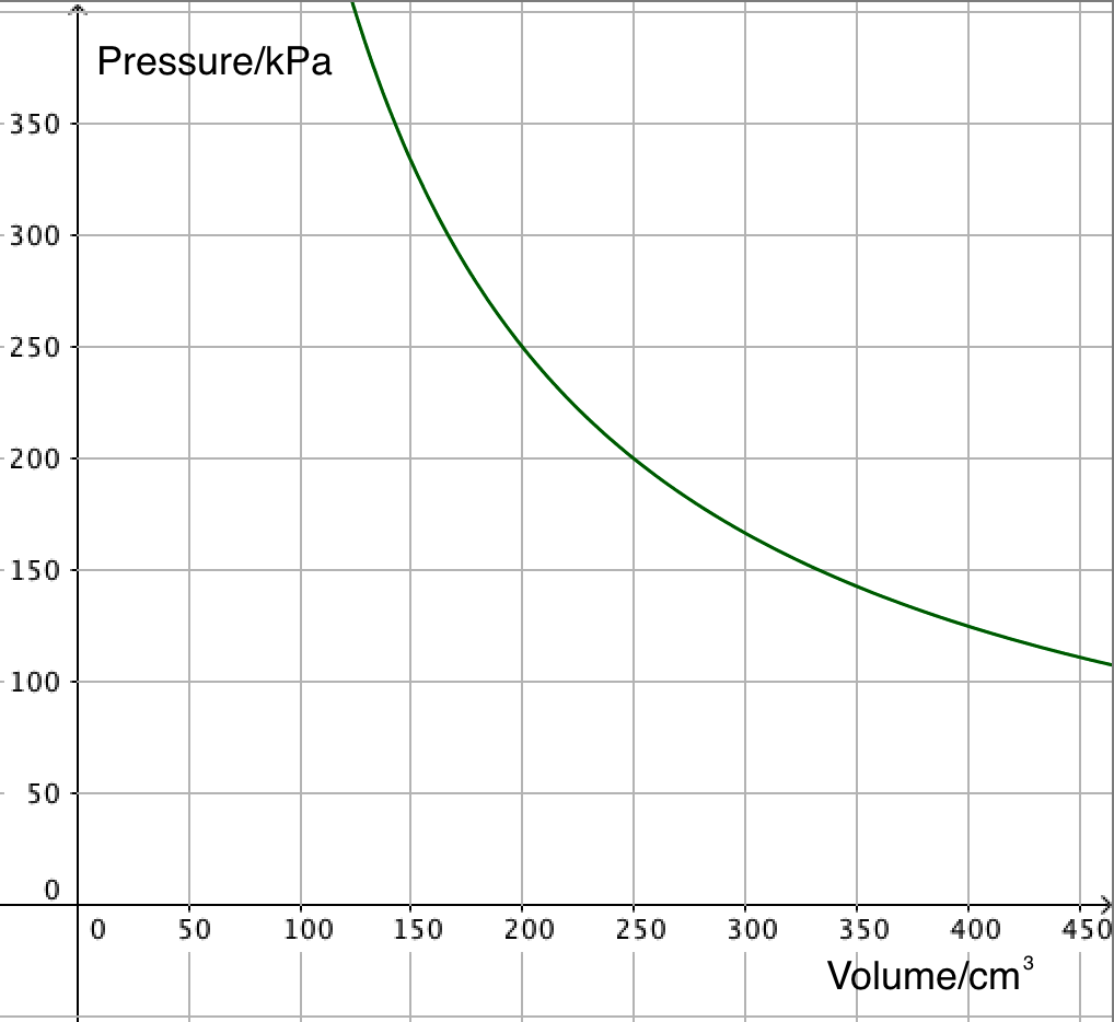 The pressure of 0.001 moles of gas is measured as its volume is reduced. The results are plotted and the best fit line below obtained.