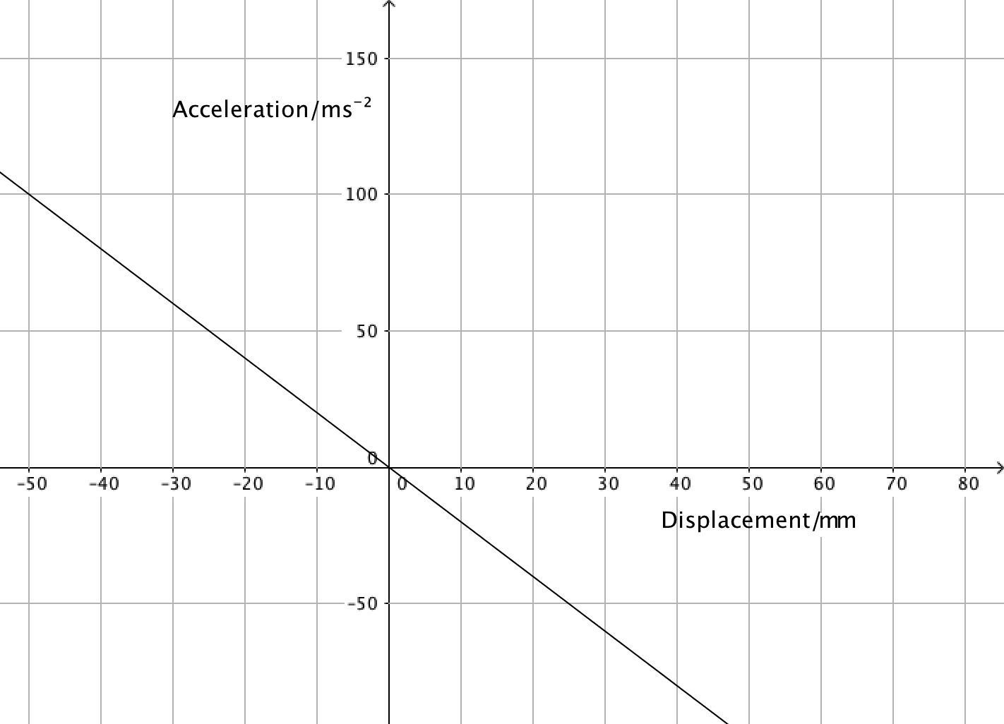 A metal ruler is clamped to a table and its end pushed down and released allowing it to vibrate. The position and acceleration are measured using a position sensor and a graph plotted of acceleration vs displacement.
