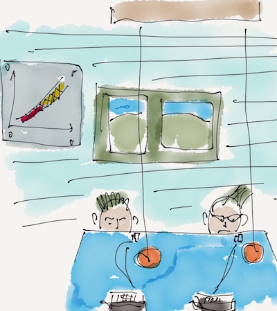 Two students simultaneously measure the position of two long pendulums with position sensors.