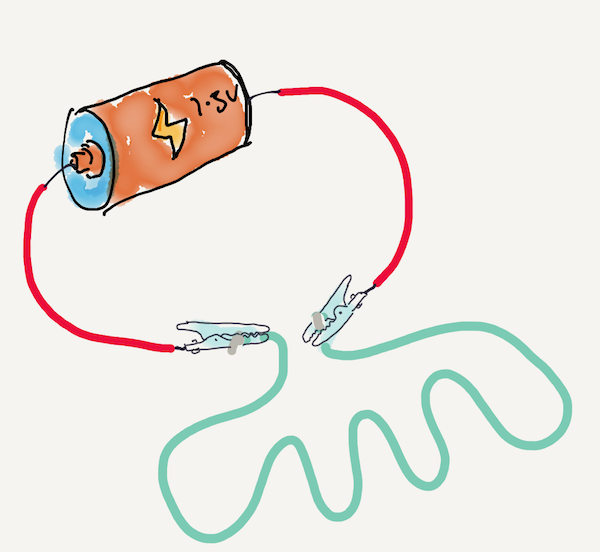 Ωm has length 2m and diameter 0.1mm. Calculate the current that will flow if connected to a 1.5 V battery.