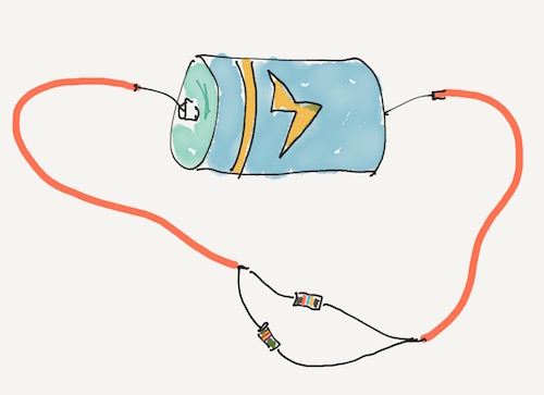 A 4 Ω resistor is connected in parallel with a 2 Ω resistor. The combination is then connected to a battery with EMF 4 V. Calculate the current in the circuit.