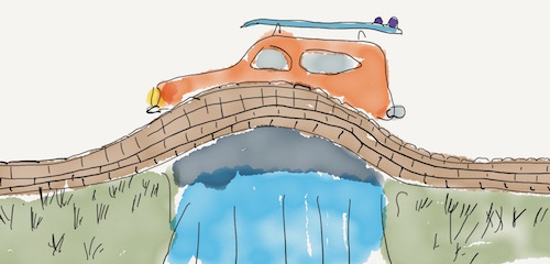 A car drives over the top of a bridge that is circular in shape. If the radius of the circle is 50 m, what is the fastest speed the car can have without leaving the surface of the road.