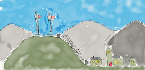 At peak times a small village requires 850 kW of electrical power. They measure the average wind speed to be 8.0 ms-1. They decide to build several turbines with blade length 45m. How many will they need if the turbines are 25% efficient?