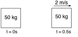 An adult pushes a child sat in a toy truck. The push lasts for 0.5s and after the push the child travels at 2 ms-1 . The mass of the child plus truck is 50 kg. The push is not constant but varies with time as shown in the graph.