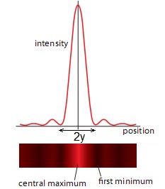 - \(\theta\) is the angle subtended by the centre and the first minimum (rad)