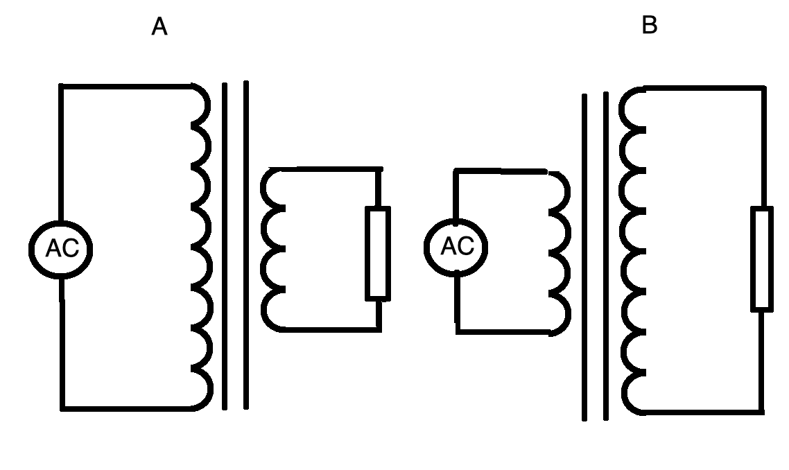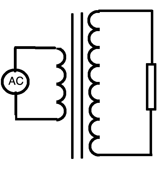 A transformer consists of two coils - primary and secondary. The primary coil produces a changing magnetic field due to the alternating current supplied within. The secondary coil cuts the changing magnetic flux and a changing EMF is induced, causing a current to flow. The strength of the magnetic field is increased by the presence of the solf iron core.