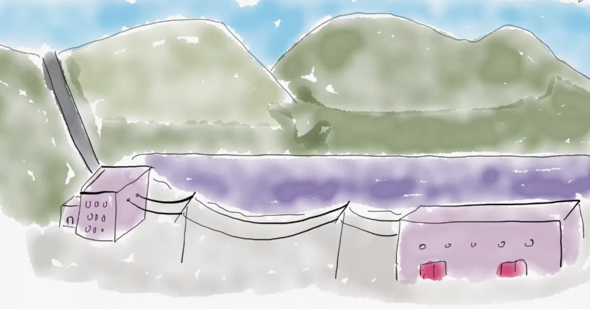 - A step-up transformer is used before the power lines (to increase voltage an reduce current)