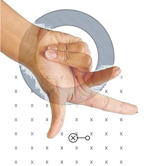 - Consider the direction in which individual moving charges experience a force. This is directed by Fleming's left hand rule.