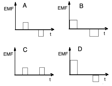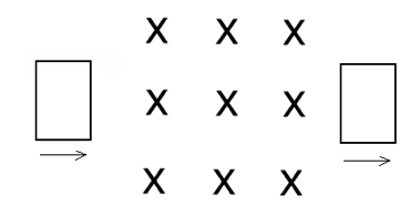 A rectangular coil moves through a uniform magnetic field with uniform velocity as shown
