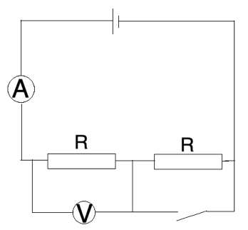 What changes would occur in the ammeter and voltmeter readings if the switch was closed.