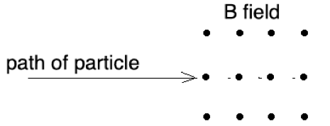A hydrogen atom enters a region of magnetic field, in the direction shown.