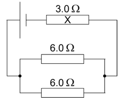 A cell of EMF 12 V is connected to 3 resistors as shown.