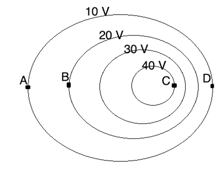 A +1 nC charge is moved between the points. Which movement will result in most energy gained by the charge?