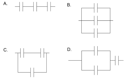 Three 2 mF capacitors are connected such that their combined capacitance is 6 mF. How are they connected?
