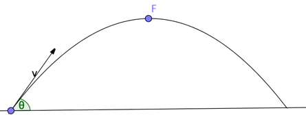 A ball of mass m is thrown with initial velocity v at angle q to the horizontal as shown.