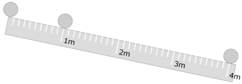 A ball starting from rest rolls down a slope with constant acceleration. It is photographed 3 times, at times t= 0 s, t = 1 s and t =2 s.