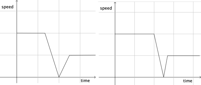 The two graphs below represent the collision of two balls of equal mass with a wall.
