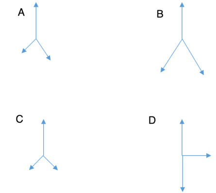 3 forces act on a point object causing it to accelerate upwards. Which free-body diagram represents this situation?