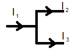 Kirchhoff's first law: Sum of currents into a junction = sum of currents out.