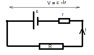 Internal resistance (r): The resistance inside of a battery or power supply.