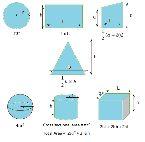 You will need to memorise the equations to obtain the areas of common shapes and it's worth learning the volumes too to save checking the data booklet too often.