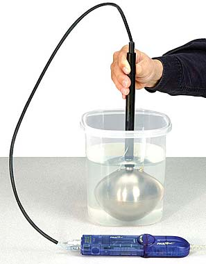 A pressure sensor is used to measure the pressure of a fixed volume of gas as its temperature is changed. Software will then enable you to plot p vs T.