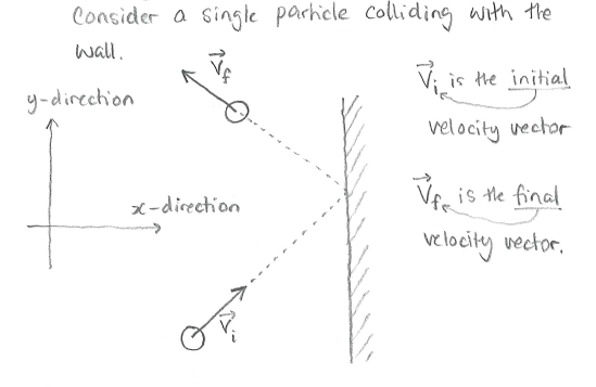 Now this force is from the wall on the particle (causing the change in momentum of the particle). Due to N3: \(F_{particle \rightarrow wall}= \rho A {v_{x}}^2\)