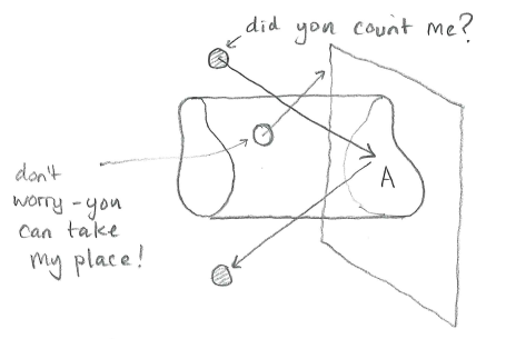 For every particle that enters the region from above or below to strike the wall, there is (on average) another that will leave without striking the wall in the prescribed area.