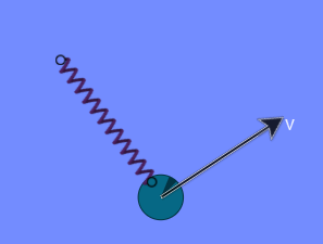 A mass travels in a circle on the end of a spring at constant speed