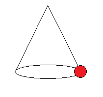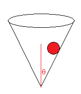 A ball travels around the inside of a cone as shown.