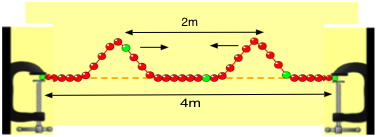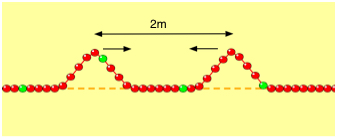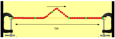 The diagram represents a pulse on a 1m long string fixed at both ends.