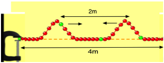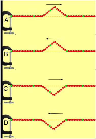 The diagram represents a pulse in a 1m string with one fixed end and one loose end.