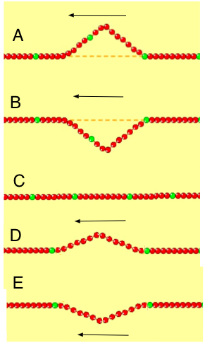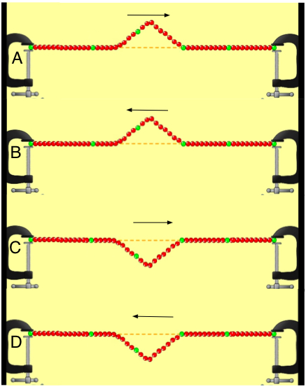 If the speed of the wave is 1ms-1, which diagram represents the string after the following times