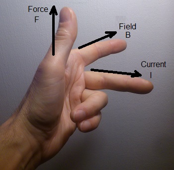 - Keeping the field direction, rotate your left hand until your second finger lines up with the conventional current.