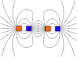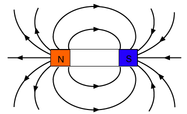 Opposite poles attract, so a north pole attracts to a south pole. The field lines for a bar magnet therefore point from N to S.