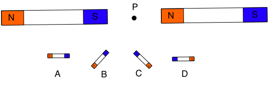 Magnetic fields are defined in terms of the rotation of a small magnetic dipole.