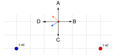 The diagram represents 2 charges
